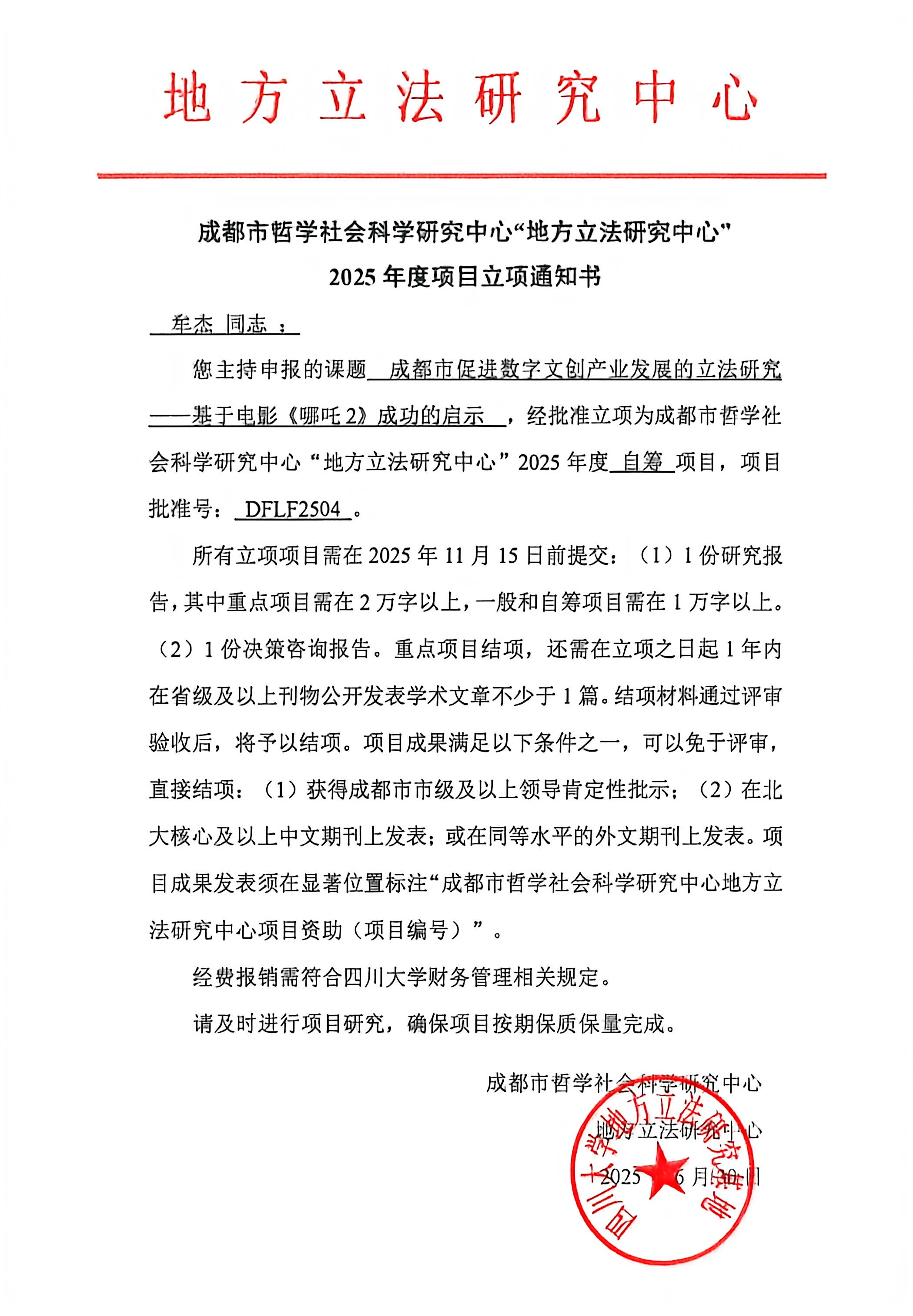 牟杰,成都市促进数字文创产业发展的立法研究——基于电影《哪吒2》成功的启示。