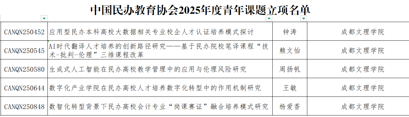 近日,中国民办教育协会公布2025年度青年课题立项的通知,我校有5个项目获此立项。具体情况如下: