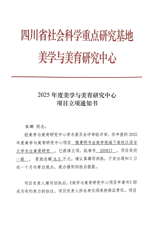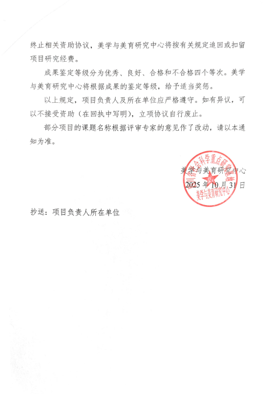 近日,美学与美育研究中心公布2025年课题立项名单,我校有1个项目获此立项。具体情况如下: